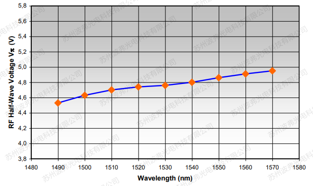 上圖給出了半波電壓隨激光光源波長的變化。