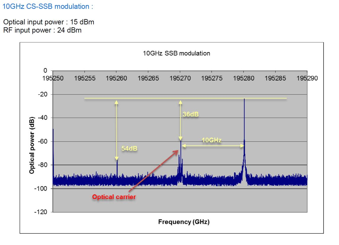 蘇州leyu集團光電科技有限公司提供完整的載波抑制單邊帶調制(Carrier Suppression Single Side Band)方案。基于法國iXblue高消光比、高抑制比、高載波衰減的高性能鈮酸鋰IQ調制器(MXIQER-LN-30),提供高達32dB載波衰減、邊帶衰減,是目前市面上針對于單邊帶調制應用性能最好的調制器之一。