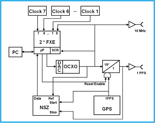 接收的時間信號由基于OCXO(或銣振蕩器)的附加控制電路穩定。以這種方式,可以產生頻率參考輸出信號,該信號對于短期和長期測量來說非常穩定。