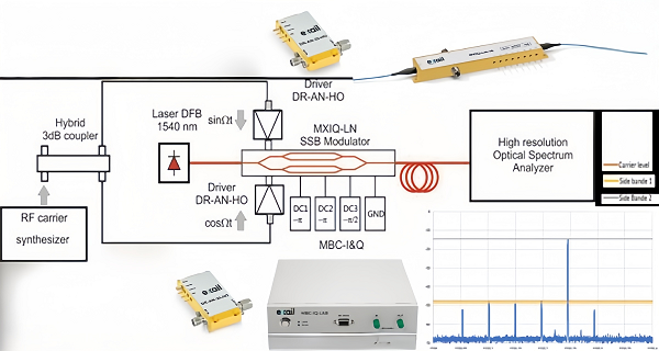 MBC-IQ-LAB是一個能夠在CS-SSB調制方案中控制I&Q調制器的電子系統。它基于最小化兩個小抖動的拍頻諧波。該系統允許在數十小時內保持光學CS-SSB頻譜的諧波抑制優于40dB。