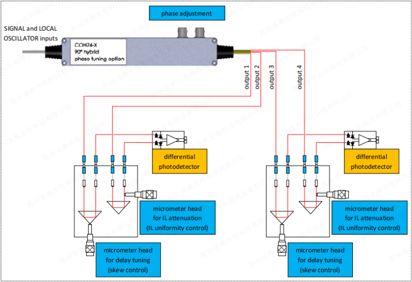 COH24-X和COH28-X還具有相位可調選項,以便根據使用的波長完美調整混頻器到90°。