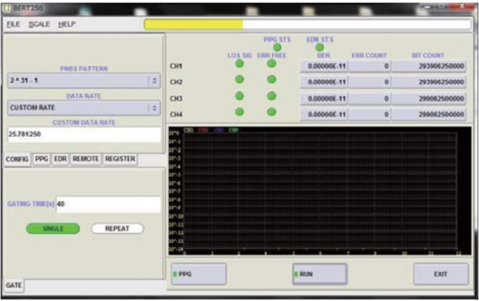 PPG-250C-x-4CH內(nèi)置超穩(wěn)定、低抖動(dòng)時(shí)鐘,EDR-250C-4CH帶有正恢復(fù)時(shí)鐘 (CDR) 使其非常適合光纖鏈路測(cè)試。這些單元可通過USB,GPIB端口程控,可以實(shí)現(xiàn)自動(dòng)測(cè)試。