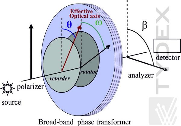 圖1.以瓊斯形式表示的寬帶相位變換器及其相對于偏振器和分析儀的位置