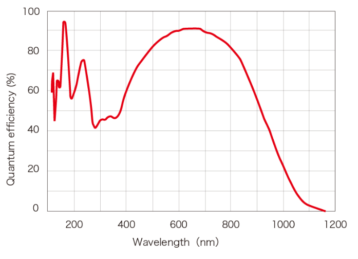 C8000-30使用濱松公司制造的超高靈敏度背照式CCD,在紫外、可見光和近紅外波段具有極高的量子效率。其在120nm處的高紫外靈敏度對半導體掩膜檢測以及測量等應(yīng)用十分有利。此外,近紅外波段的高靈敏度可用于熒光測量、近紅外激光二極管測量等等。