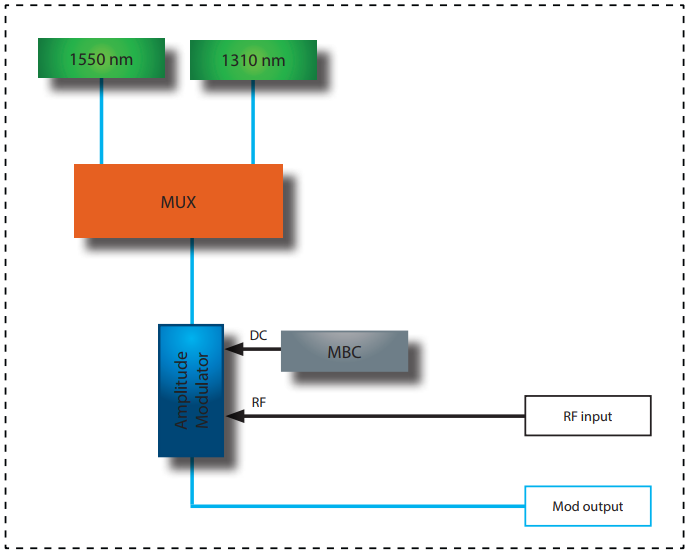 ? 調制器偏置控制器:內部LiNbo3調制器是具有非常低漂移的X-切設計器件。然而,無論環境條件如何,都提供了一個自動偏置控制電路來將調制器的工作點鎖定在正交點。MBC確保了隨時間的穩定操作,并顯示出非常低的噪聲靈敏度,從而顯著降低了所需的抖動電壓幅度。