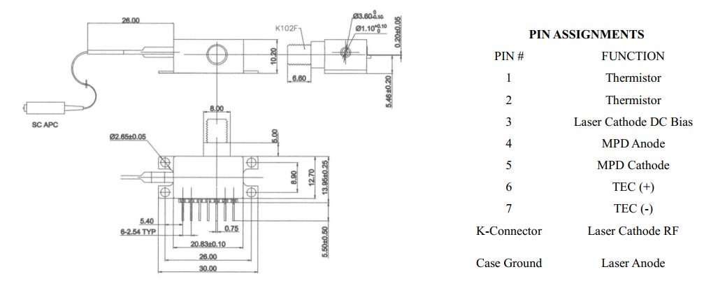 DML系列直接調(diào)制激光二極管才有標(biāo)準(zhǔn)單模SMF-28e光纖輸出(可定制保偏尾纖輸出),阻燃涂層,900um套管,標(biāo)準(zhǔn)1m尾纖,5mm PIN腳間隔,已經(jīng)SC/APC接頭(可定制)。