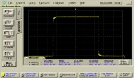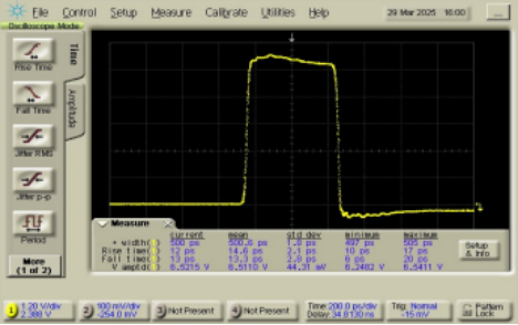 500ps脈寬 @時鐘頻率. 100kHz,輸出電平 4.6Vpp |